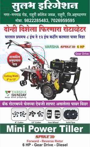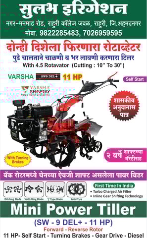मी सुलभ इरिगेशनकडून 11 HP पावर वीडर घेतला आणि माझ्या शेतातील आंतरमशागत खूप सोपी झाली. कमी इंधनात जास्त काम, कमी मेहनत आणि वेळेची बचत! खास करून बॅक रोटरीमध्ये चेनऐवजी शाफ्ट असल्यामुळे मशीन जास्त टिकाऊ आहे. सुलभ इरिगेशनची विक्रीपश्चात सेवा देखील खूप चांगली आहे. शेतकऱ्यांसाठी खरोखरच उपयोगी मशीन!"